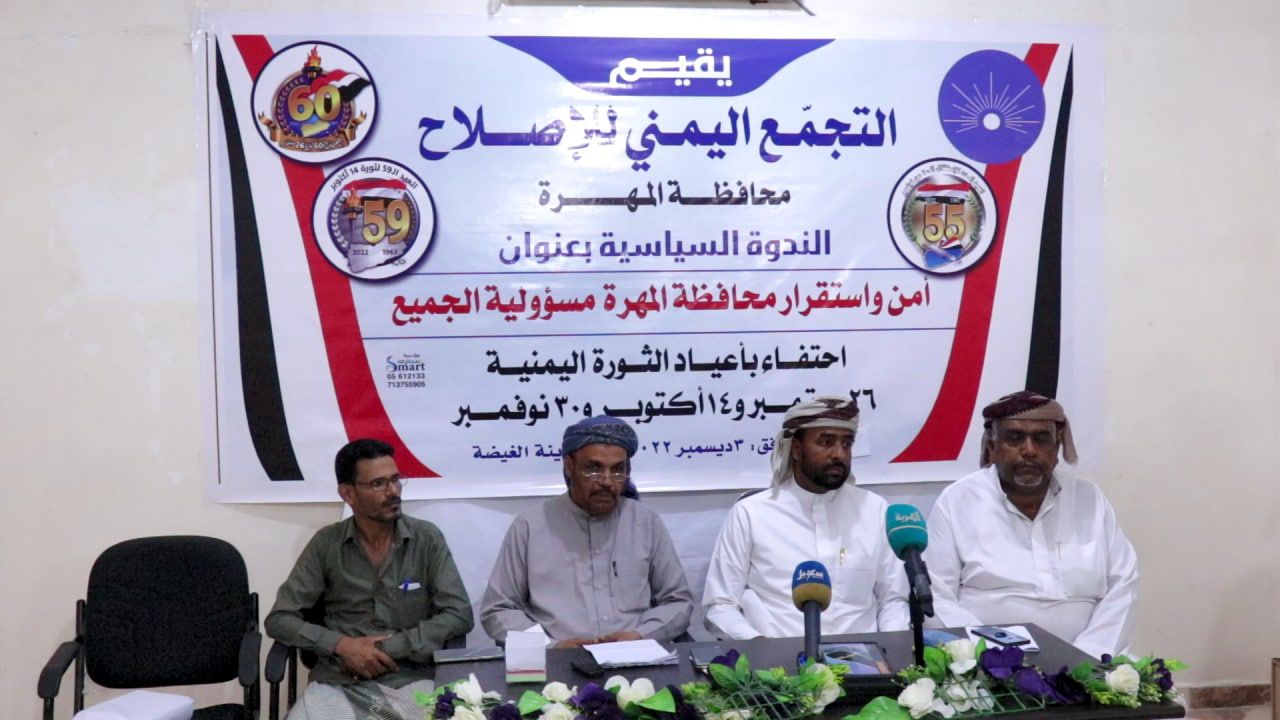 أقام التجمع اليمني للإصلاح بمحافظة المهرة، مساء الثلاثاء، مأدبة إفطار وعواد السنوي