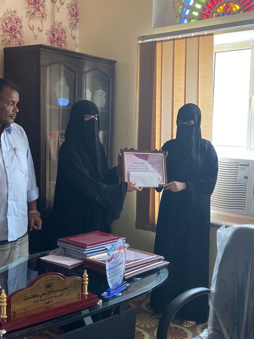 كرّمت مديرة الإدارة العامة لتنمية المرأة بمحافظة المهرة الاستاذة لبنى كلشات اليوم ، وكيل محافظة المهرة المساعد لشؤون المرأة الأستاذة خديجة محمد باكريت بدرعاً تذكارياً تقديراً وعرفاناً منها نظير جهودها المبذولة في دعم أنشطة الإدارة في مختلف المجالات.