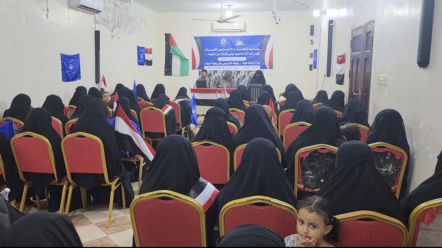 أقامت دائرة المرأة بالتجمع اليمني للإصلاح في محافظة المهرة، اليوم الخميس، ندوة سياسية بعنوان "المرأة الإصلاحية رفيقة التأسيس وشريكة البناء"، تزامنًا مع ذكرى التأسيس الـ35.